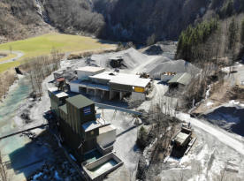 PRODUKTIONSABLAUFVon eckig zu rundDank der natürlichen Gegebenheiten wird das unter dem Gletscher freigelegte Geröll, das anfänglich noch blockig und eckig ist, ins Rollen gebracht und durch die Täler und Schluchten feingerieben und rundgeschliffen.Das Geschiebe lagert sich im Delta unter der Linthschlucht in gewaltigen Massen ab und muss, um Überschwemmungen zu verhindern, aus dem Bachbett ausserhalb der Fischschonzeit von März bis November ausgehoben werden. Die Bewirtschaftung des Kieses ist für den Schutz der Bewohner und der genutzten landwirtschaftlichen Flächen von grosser Wichtigkeit.Das Rohmaterial wird vom Zwischenlager auf den Waschanlagen und den Brecheranlagen auf die einzelnen Komponenten aufgeteilt und später ab der Dosieranlage dem Kunden übergeben